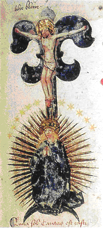 «É bem verdade que o sofrimento, a angústia é um atributo humano, mas o Homem-Deus, o Verbo Encarnado, o Avatara da Divindade na Terra, tem também o seu lado humano, que é a face voltada para baixo e como tal está sujeito às vicissitudes humanas, embora participe, igualmente, do que se cumpre nas alturas celestes. Esta estranha situação deu origem ao símbolo da chamada “Flor de Lis”, cujo desenho estilizado mostra três pétalas maiores, voltadas para o alto e três pétalas (à guisa de pedúnculo) menores, voltadas para baixo.